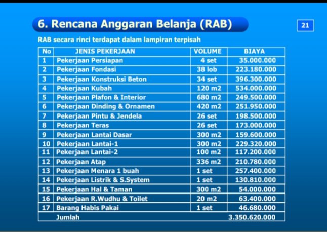 Rencana Anggaran Pembangunan Sebesar Rp. 3.350.620.000.000,00 (Tiga Milyard Tiga Ratus Lima Puluh Juta Enam Ratus Dua Puluh Juta Rupiah)