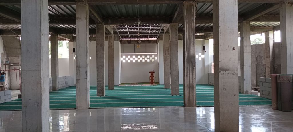 ✅ Karpet dan Lantai: Karpet hijau tebal dengan garis shaf yang jelas akan dipasang agar memberikan kenyamanan saat beribadah. Lantai bisa menggunakan marmer putih atau abu-abu untuk memberikan nuansa sejuk.